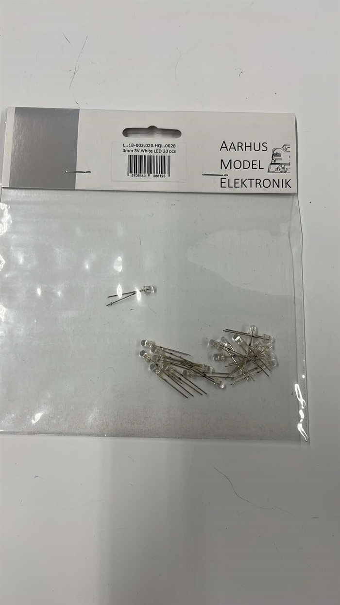 Aame 0028 Lysdioder, hvide, LED, 3 mm, 3V, 20 stk