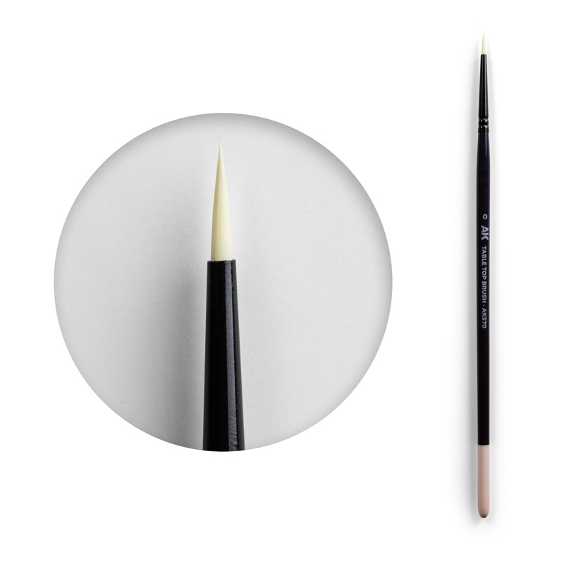 Syntetisk pensel nummer 0 velegnet til både begyndere malere og avancerede modelbyggere, der begynder at male figurer til bordplade niveau.