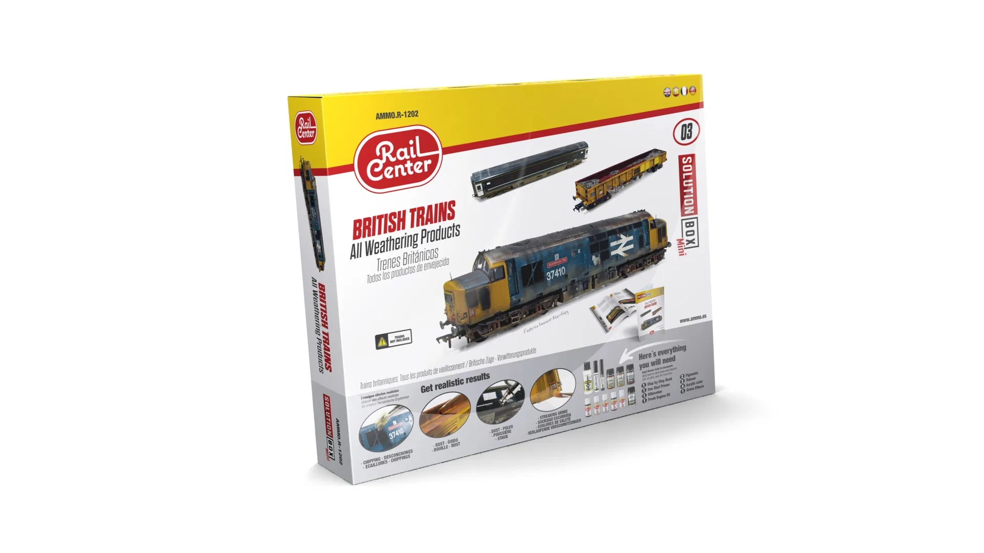 SOLUTION BOX fra AMMO giver dig alt hvad du behøver for realistisk at male og ælde amerikanske tog fra alle tidsaldre. Dette sæt indeholder ikke kun præcise nuancer og vejrbestandige produkter. Denne omfattende 96-siders guide giver trin-for-trin instruktioner på fire sprog (tysk, engelsk, spansk og fransk) og forklarer, hvordan man anvender de forskellige farver og effekter på amerikansk rullende materiel.