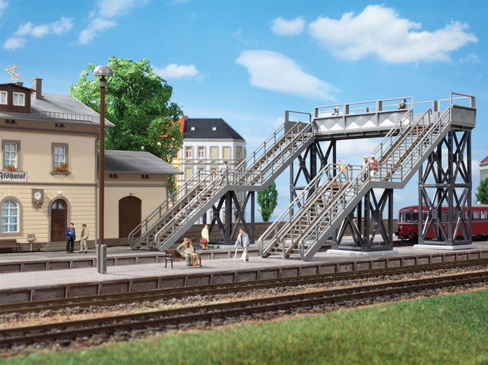 Overgang med to trapper til dobbeltsporede ruter, som kan monteres i flere varianter.