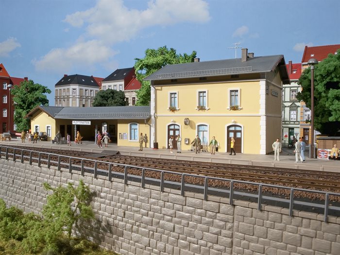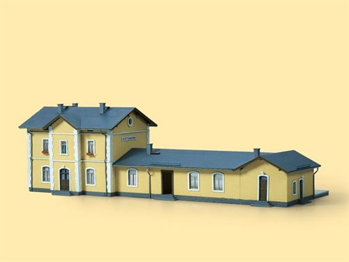En typisk østrigsk togstation. Indgangsbygningen med perron og udhus var modelleret efter