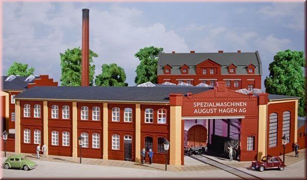 Auhagen 11421 Maskinfabrik H0' er designet med en ekstraordinær øje for detaljer, hvilket gør den til en fremragende tilføjelse til din modeljernbane. Bygningen fremstår med realistiske strukturer og teksturer, der tilføjer dybde og realisme til dit layout. Denne model er fremstillet i robuste materialer, der sikrer holdbarhed og lang levetid.