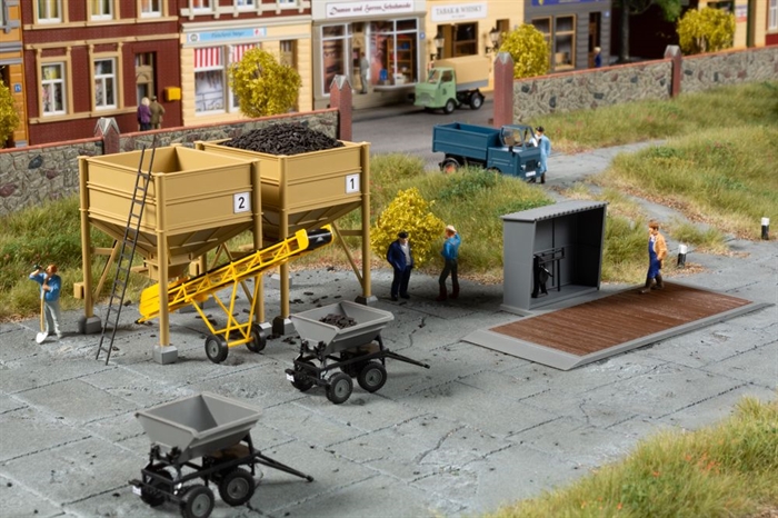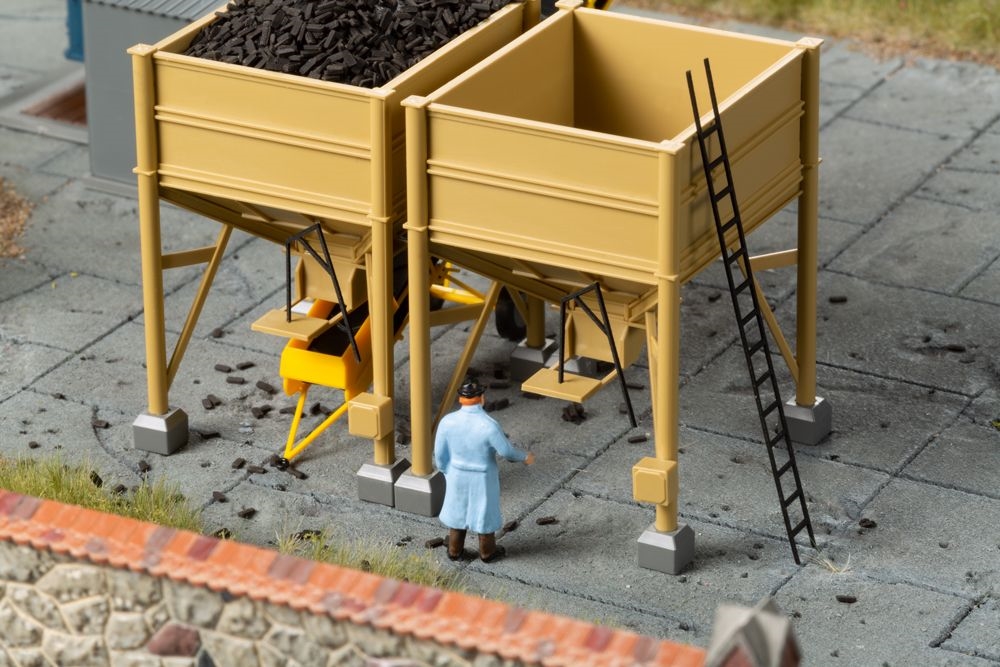 Kullastning er et passende supplement til handel med brændstof. Løse briketter (mærket Juweela) opbevares i de to kulbeholdere. De når leveringskøretøjerne med tyngdekraften og et transportbånd. Der er en stige til vedligeholdelsesarbejde. Ligesom glidestængerne til betjening af aflæsningsklapperne er den filigran laserskåret af pap. Sættet fuldendes af en lastbilvægt. Vejeapparatet er beskyttet mod vejret i et læ.