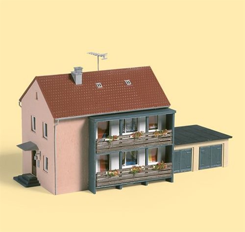 Opdag den charmerende realisme i modeljernbanens verden med Auhagen 12236 Flerfamiliers hus i skala H0. Dette nøje designede byggesæt repræsenterer et typisk nybyggeri fra 1960'erne, som man ofte finder i forstæderne, komplet med altaner og garager. Produktet måler 175 x 75 x 98 mm, hvilket gør det til en perfekt tilføjelse til enhver H0-skala modeljernbane eller diorama. Bygningen er detaljeret med æstetiske elementer fra 60'ernes arkitektur, hvilket tilføjer en autentisk følelse og dybde til din modeljernbane.