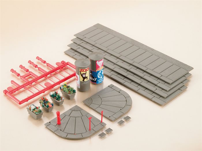 Passer til rækkehussortimentet til lige og buede layouts. Med afgrænsningspæle, brandhaner,