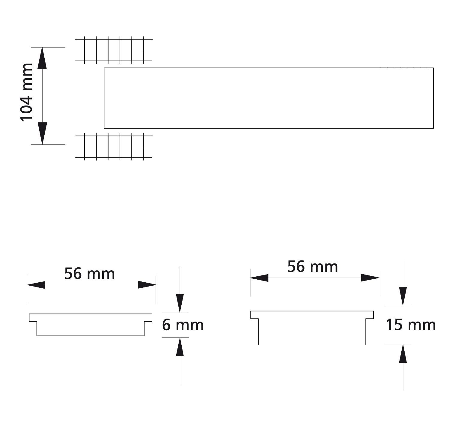 Højde enten 15 mm for ballastspor eller 6 mm.