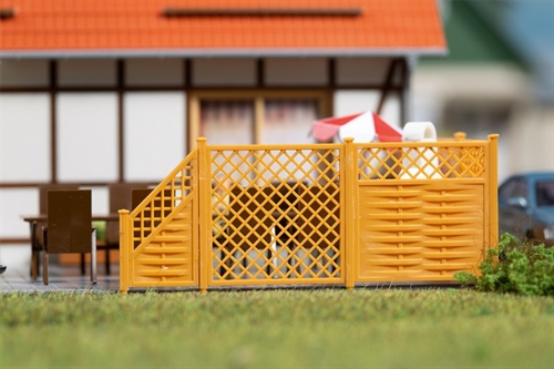 og stativ, 2 polstrede kasser, 2 bålskåle, 1 pejsgrill, plantepotter med farverige skumflager og