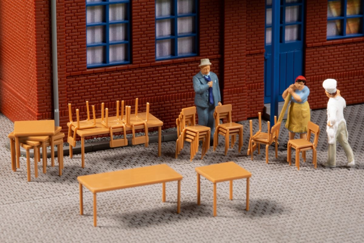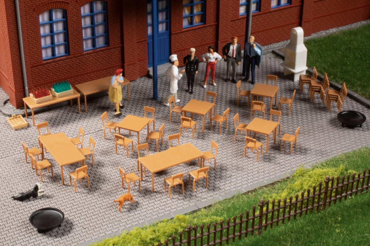 Produktet er ideelt for både begyndere og erfarne modelbyggere, der ønsker at tilføje autentiske detaljer til deres layout. Borde og stole kan nemt males og tilpasses, så de passer ind i enhver scene eller æra. Med Auhagen 41671 får du ikke kun kvalitet, men også muligheden for at fordybe dig i en verden af miniaturebygning med uendelige kreative muligheder.Opgrader din modeljernbane eller diorama i dag med Auhagen 41671 – en uundværlig tilføjelse for alle modelbygningsentusiaster!