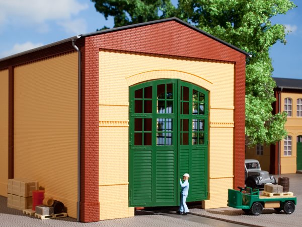 Auhagen 80605 mur 2326A gul med grøn port I H0