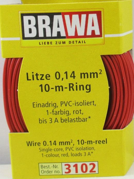 **Produktbeskrivelse for Brawa 3102 Ledning, Rød, 0,14 mm, 10 m**