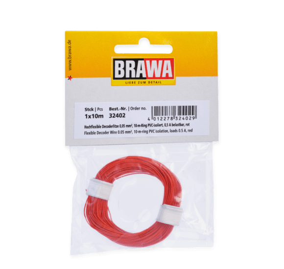 Brawa 32402 Ledning, 0,05 mm2, 10 mtr, rød