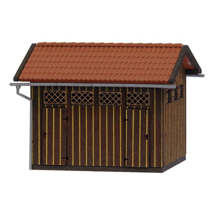 Title: Busch 1469 Banegårdstoilet til Modeljernbane, Skala H0Beskrivelse: Opgrader din modeljernbane med en autentisk detalje ved at tilføje Busch 1469 Banegårdstoilet i skala H0. Dette nøje udformede tilbehør fra den anerkendte tyske producent Busch tilføjer et realistisk element til din modelbane, perfekt til at skabe livlige og detaljerede banegårdsscener.