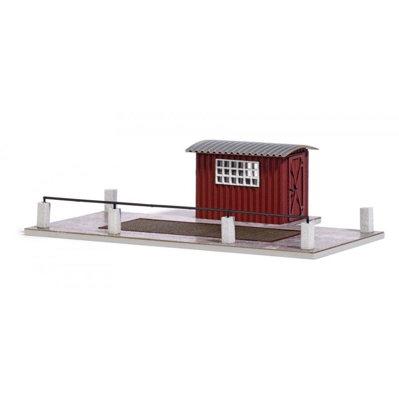 Sæt til lastbilvægt, bestående af et bølgeblikhus med tøndetag, dør og vinduer.