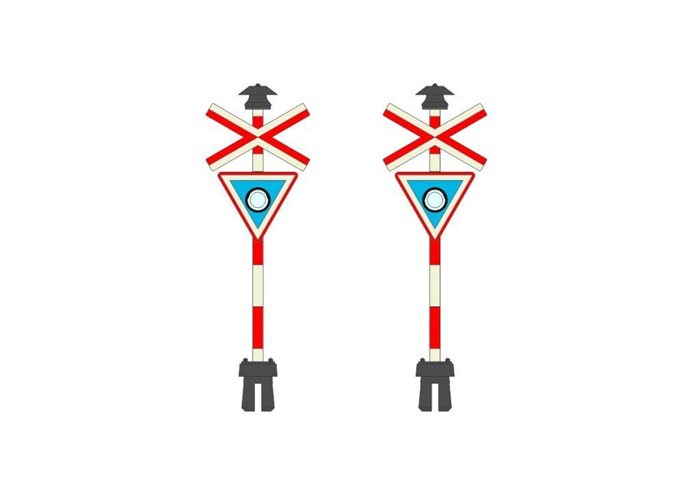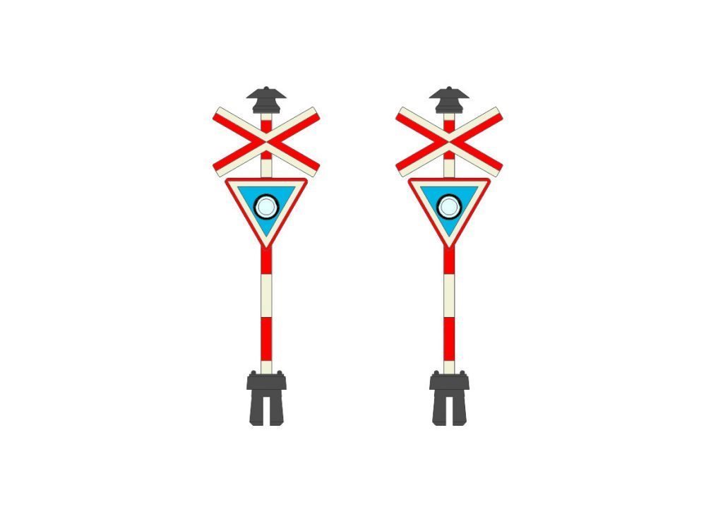 Dekas E104  2 stk. overkørselssignal m/kryds for enkeltspor m/klokke