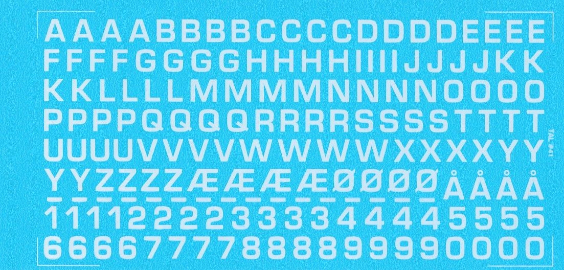 Produktet er ideelt for modelbyggere og hobbyentusiaster, der ønsker at opnå en høj grad af detalje og realisme. Decals'ne er 6 mm høje, hvilket gør dem ideelle for små til mellemstore modeller. De hvide bogstaver og tal står skarpt og klart på enhver farvet baggrund, hvilket sikrer, at dine modeller ser professionelle og nøjagtige ud.