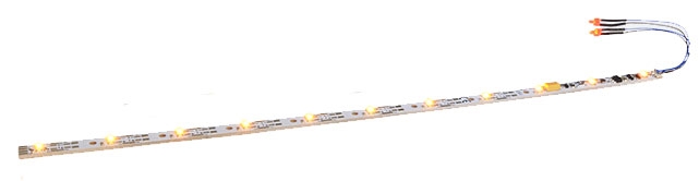 De 255 mm lange, 9 mm slanke LED-lysstrimler med 11 LED'er er designet til N-, TT- og H0-vogne, der skal køre på digitale modeljernbaner. Vi tilbyder to versioner: Versionen med varenummer 50708 er udstyret med varmhvide LED'er, mens vi på varenummer 50709 har installeret gule LED'er. Dette giver dig mulighed for at matche lysstrimlerne med dine eksisterende vogne. Som sædvanlig for alle ESU-lysstrimler kan du justere lysstyrken efter dine ønsker ved hjælp af en lille variabel modstand (potentiometer). Takket være den indbyggede spændingsregulering forbliver lysstyrken næsten konstant, selv ved konventionel kørsel. For at overvinde længerevarende strømafbrydelser kan du tilføje en PowerPack. Lysstrimlerne kan selvfølgelig skæres vilkårligt til, så de passer til vogne fra alle producenter, og de leveres med en rød baglygte.
