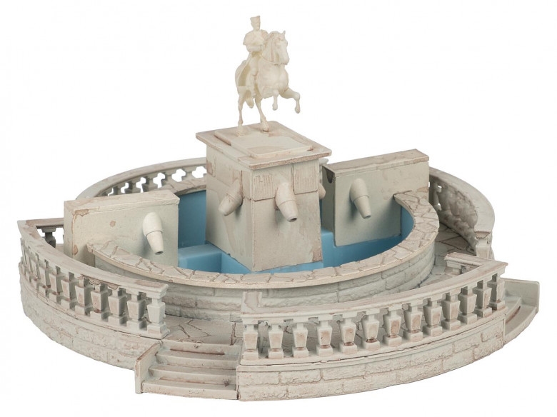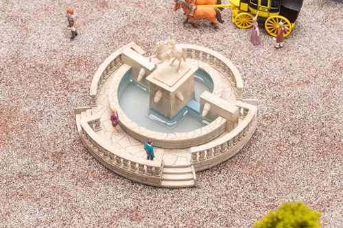 Fortryllende slotsfontæne i historisk stil, kronet af en rytter på en stigende hest, der minder om svundne tider. Det tilføjer en smuk accent og udsmykker elegant enhver slotshave eller park. Fontænen kan nemt betjenes med vandpumpen (art. 180627 - ikke inkluderet), hvilket gør den til havens livlige midtpunkt.