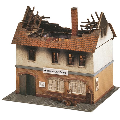 Bring dramatik og historie til din modeljernbane med "Faller 130429 Nedbrændt restaurant, H0". Dette unikke og detaljerigt patinerede modelbyggesæt repræsenterer en restaurant, der har oplevet en brand, hvilket tilføjer en autentisk og rørende dimension til din modelby.Produktet fremstår med realistiske skader og spor efter brand, hvilket gør det til en iøjnefaldende tilføjelse til enhver modeljernbanesamling i skala H0. Med dimensionerne 136 x 119 x 119 mm passer denne model perfekt i landskaber med en by- eller landtema, hvor den kan fungere som et centralt visuelt punkt."Faller 130429 Nedbrændt restaurant" er ikke kun en model; det er en fortælling om overlevelse og historie, der venter på at blive integreret i din modelverden. Uanset om du er en erfaren modelbygger eller ny inden for hobbyen, vil dette sæt give dybde og interesse til din modeljernbane.Tilføj "Faller 130429 Nedbrændt restaurant" til din samling i dag og skab en unik historie på dine skinner.