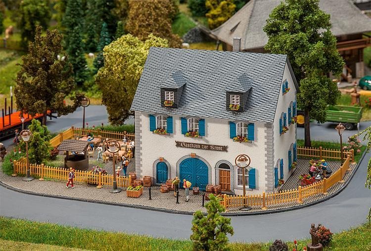 Opdag charmen af historisk arkitektur med Faller 130437 Gasthus Krone, ep I, H0. Dette detaljerede modelbyggesæt er perfekt for enhver modeljernbaneentusiast eller samlere af miniaturmodeller. Med sine nøjagtige mål på 158 x 114 x 160 mm, gengiver sættet en klassisk tysk gæstehus fra epoke I, hvilket tilføjer en autentisk og tidstypisk atmosfære til din modeljernbane eller diorama.Faller, en anerkendt producent inden for modelbygning, er kendt for deres kvalitet og detaljerigdom, hvilket tydeligt ses i Gasthus Krone-sættet. Dette modelbyggesæt er fremstillet med en præcision, der sikrer, at hver lille detalje er tro mod den originale byggestil, hvilket gør det til en fremragende tilføjelse til enhver H0-skala opsætning.Uanset om du er en erfaren modelbygger eller ny i hobbyen, tilbyder dette sæt fra Faller en sjov og tilfredsstillende byggeoplevelse. Integrer Faller 130437 Gasthus Krone i din modeljernbaneverden og bring en del af historisk europæisk arkitektur til live på din bane. Perfekt som gave til modeljernbaneentusiaster eller som en del af din egen samling, vil dette sæt ikke skuffe. Tilføj et touch af historisk æstetik og kvalitetshåndværk til din miniatureverden med Faller 130437 Gasthus Krone, ep I, H0.