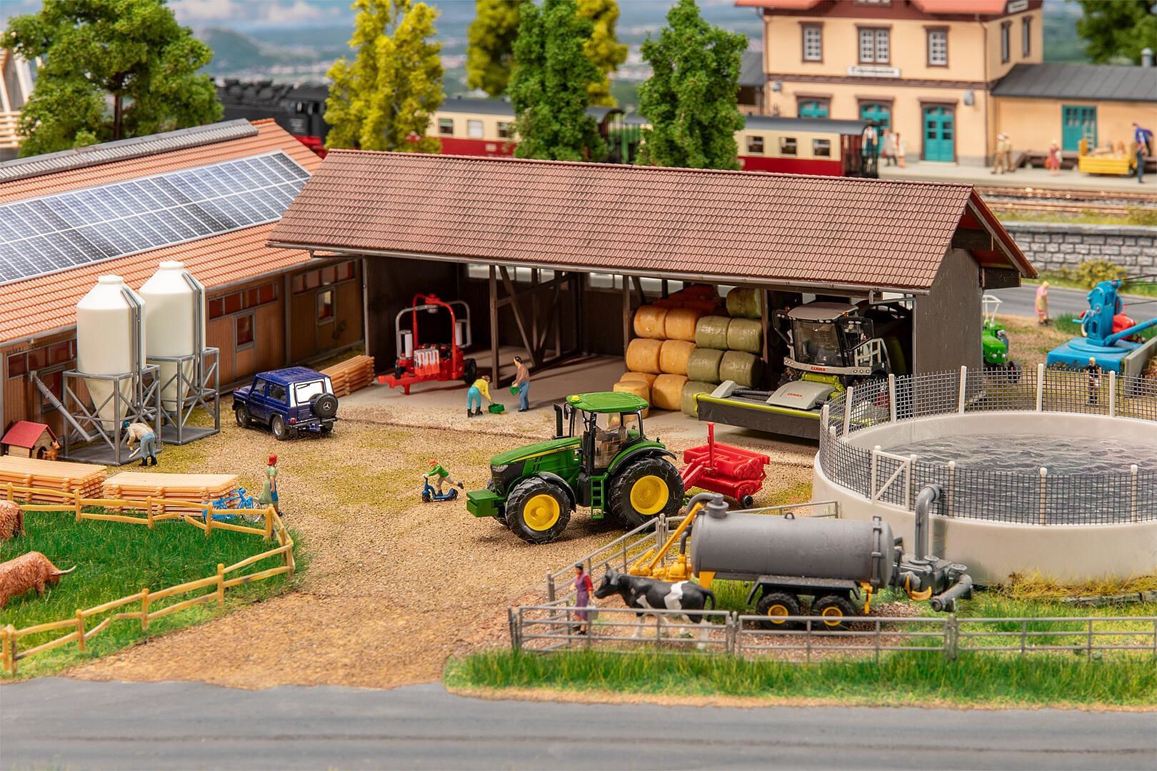 Produktet omfatter en rummelig ladebygning, en praktisk gylletank og flere fodersiloer, der alle er designet med nøje øje for detalje. Hver komponent er nøje fremstillet for at efterligne virkelige strukturer, hvilket gør dem ideelle til epoke IV-scenarier.