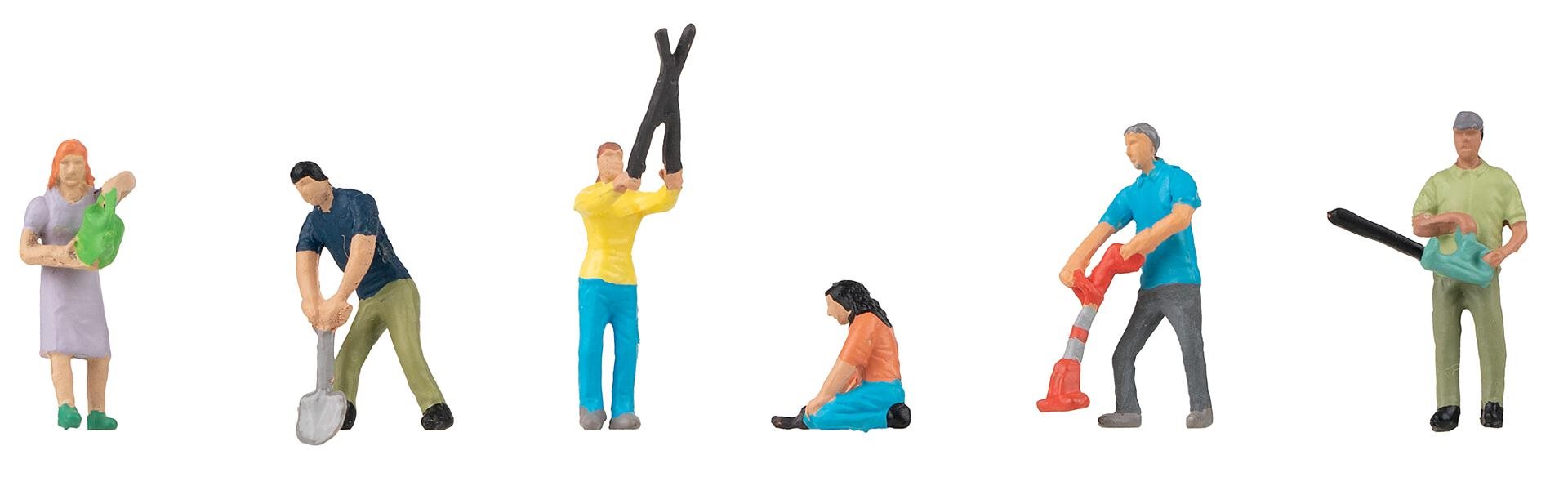 Giv liv til din modeljernbane eller miniatureverden med "Faller 151686 I haven, seks figurer, H0". Dette sæt består af seks detaljerede figurer, der forestiller personer i forskellige fritidsaktiviteter i en have. Perfekt for at tilføje realisme og charme til din H0-skala landskabsscener.