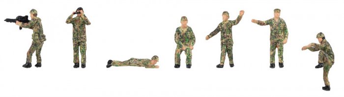 Hver figur er omhyggeligt designet for at afspejle realistiske militære uniformer og positurer, hvilket gør dem ideelle til historiske krigsscener eller som en del af en militærbase på din modelbane. Sættet er fremragende til modelbyggere, der ønsker at tilføre en følelse af handling og liv til deres scenarier.