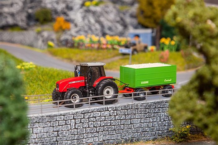 Faller 161588 MF Traktor med træflis trailer (WIKING), H0