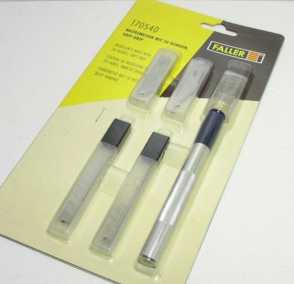 Produktbeskrivelse for Faller 170540 Håndværkskniv med 20 blade, blødt greb