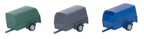 Tre trailere i forskellige farver – perfekte til at designe læsse- eller parkeringspladser.