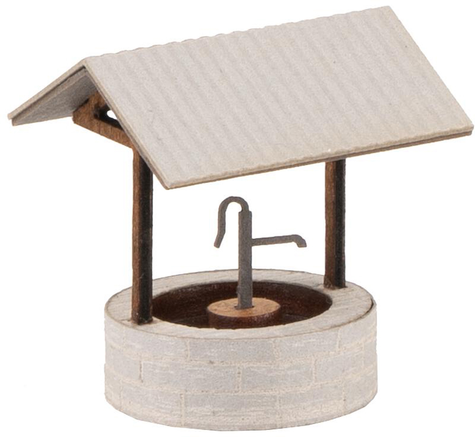 Have eller landsbytorvcenter! Lasercut model af murstensfontæne med baldakin og vandpumpe. Model uden funktion.