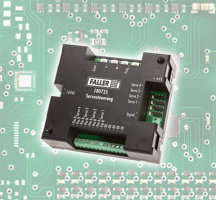 De fire forbindelige servoer styres af denne elektronik og kan programmeres med den. Som du er vant til fra vores nye kontroller, kan dette også styres helt analogt eller digitalt via et tilsvarende kontrolcenter. Forbindelsen foretages via 16 V vekselstrøm.