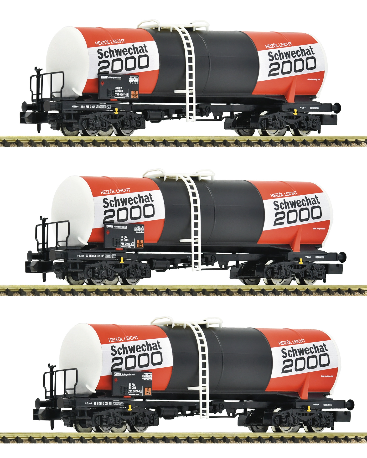 Vognsæt med tre 4-akslede tankvogne “ÖMV” ansat af de østrigske forbundsbaner.