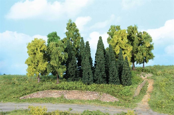 Oplev den naturlige charme og detaljerigdom med Heki 1958 Blandet Skov sættet, perfekt for enhver modeljernbaneentusiast eller landskabsbygger. Dette sæt indeholder 22 livagtige træer, der varierer i højde fra 5 til 12 cm, ideelle for at tilføje realisme og dybde til dine N-spor modeljernbanelayouts eller miniaturelandskaber.