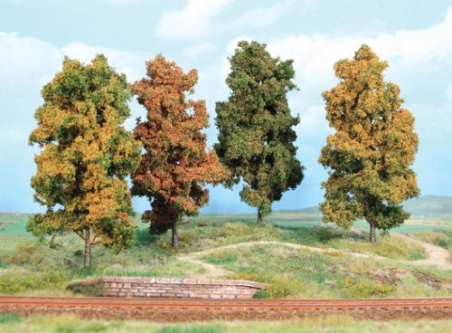 Hver træ i dette sæt er omhyggeligt udformet med øje for detaljer, fra de nuancerede farver på bladene til de robuste og naturtro stammer. Med en praktisk størrelse på 10 cm, passer disse træer perfekt ind i de fleste skalaer af modeljernbaner og landskabsdioramaer.
