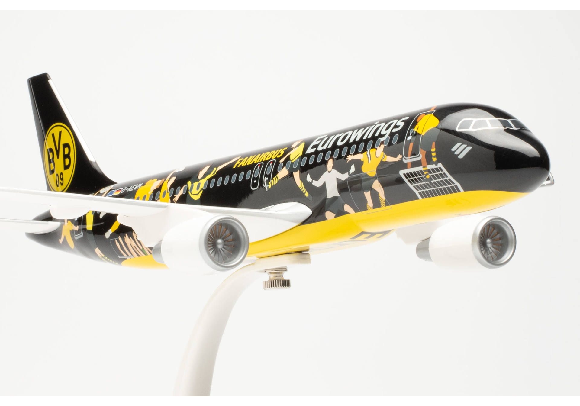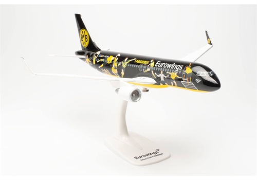 Eurowings har været partner med Borussia Dortmund siden fodboldsæsonen 2016/17. Med BVB Fan Airbus er Eurowings det første flyselskab i verden, der dedikerer sit eget fly til fodboldfans: Airbus A320, der er registreret under registreringen D-AEWM, flyver i en speciel sort og gul farve som ambassadør for topfodbold og fankultur i Eurowings' europæiske rutenetværk - helst fra Dortmund, Tyskland Hjemsted for BVB Fanairbus. BVB-fans var på forhånd aktivt involveret i designet af flyet. De havde en mening om, hvilke mest populære øjeblikke og stjerner fra BVB-historien skulle foreviges på flyet. Efter at have stemt af over 10.000 Borussia-spillere, blev vindermotiverne bestemt. En meget krævende udfordring ved maling af Airbus, da illustrationerne af de ni mest legendariske BVB-øjeblikke skulle designes på en sådan måde, at fodboldfans straks kunne identificere spillere og heltescener. Dette blev implementeret og iscenesat i tegnestilen fra fodboldkunstnerne "Hands of God". I samarbejde med kunstnerne fra “Hands of God”, Eurowings og Borussia Dortmund tilbyder Herpa “Fanairbussen” i ikke mindre end fem varianter: Som metalmodel i skalaerne 1:500 (varenr. 536981) og 1:400 ( Varenr. 562829), som en meget detaljeret færdig model i 1:200 (varenr. 572750), og som en del af den populære Snap-Fit serie også i 1:200 (varenr. 613927) og som den største version selv i 1:100 (varenr. 613934). Licenseret af Eurowings Aviation GmbH BVB09 og BORUSSIA DORTMUND er registrerede varemærker tilhørende BVB Merchandising GmbH Design af HANDS OF GOD