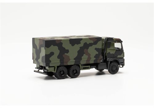 Herpa 746991 Mercedes-Benz Arocs 6x6 Pritsche/Plane "Bundeswehr", flecktarn, H0