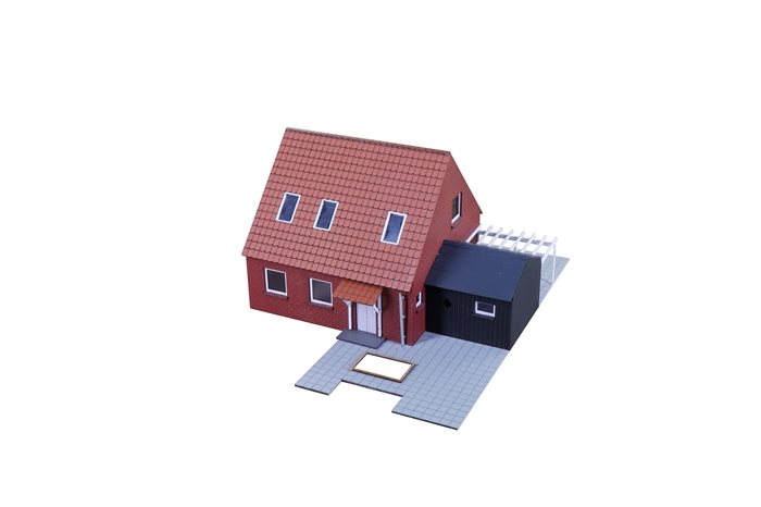 **Produktbeskrivelse:** Hobbytrade 87273 er en enestående model af et villa- eller rækkehus, der er udført i smukke, røde sten, der giver et livligt og realistisk udseende. Modellen er i skala H0, hvilket gør den ideel til modeltogsentusiaster, der ønsker at skabe realistiske byscener eller beboelsesområder.