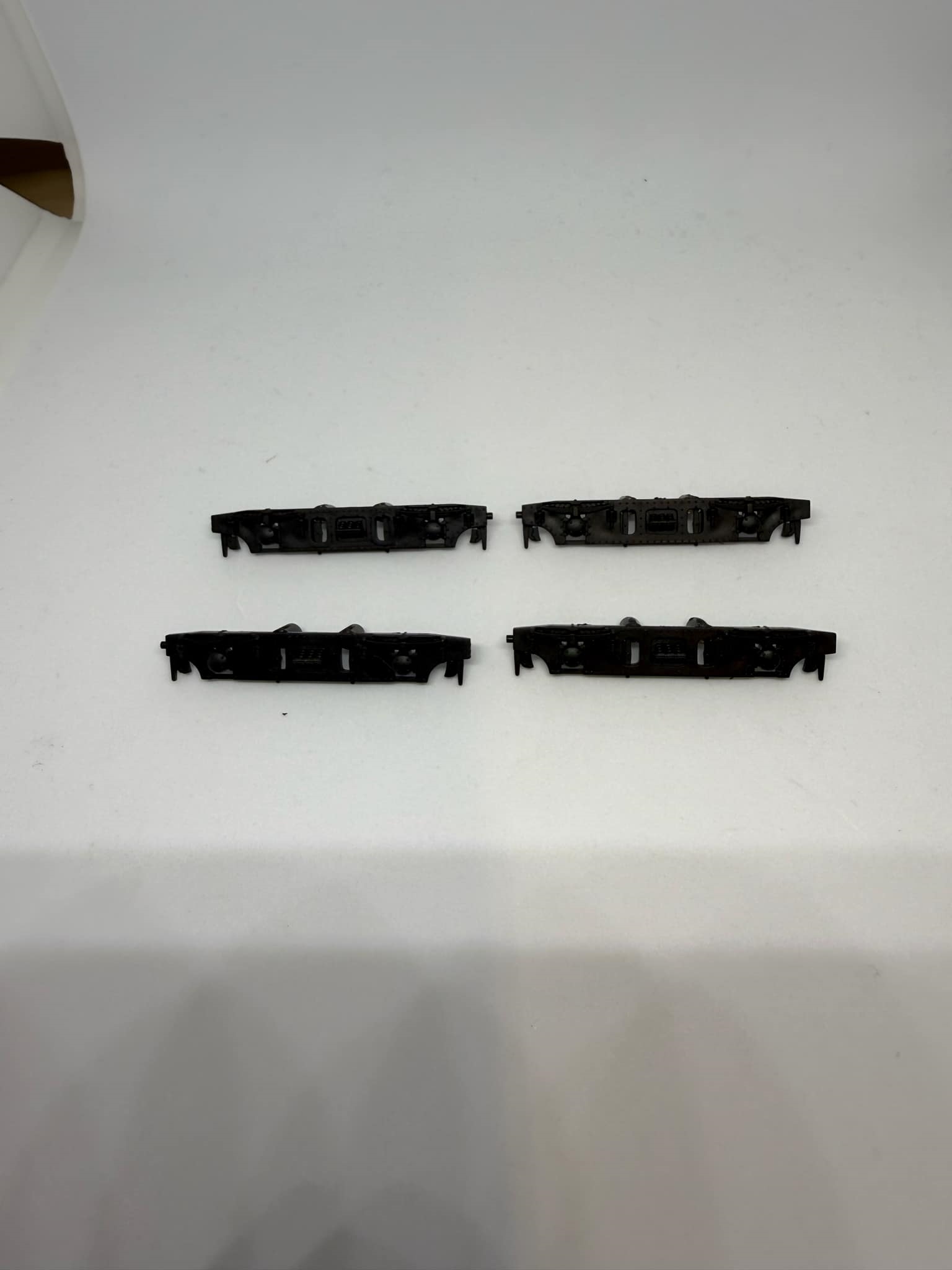 - **Pakke med 4 boogiesider**: Ideel til komplettering eller udskiftning af dele på din modeljernbane.