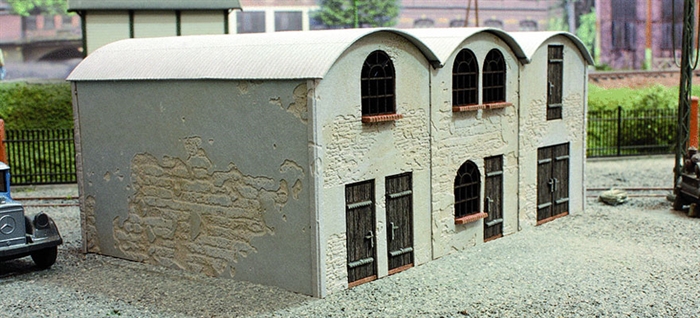 Joswood 17059 Tøndetagshal, grå, Lasercut byggesæt, H0
