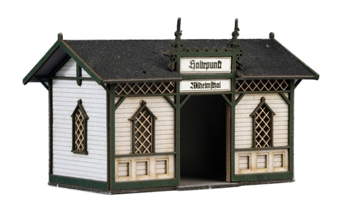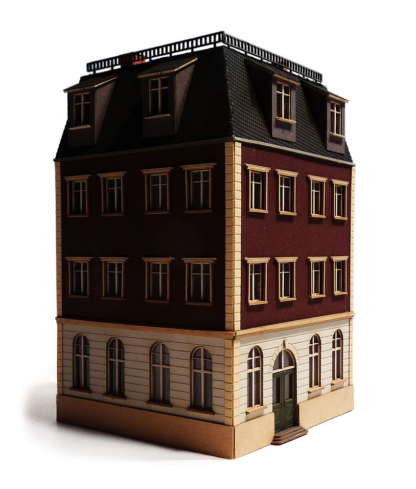 Fuldstændig farvet laserskåret kit i skala 1:87 (måler H0); Mål (L x B x H): 93 x 93 x 150 mm.