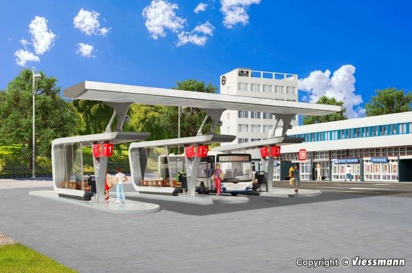 Kibri 39005 Tilbygningssæt 2 moderne busstoppesteder med sejl inklusive LED-belysning, H0
