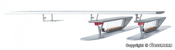 Opgrader din modeljernbane med 'Kibri 39005 Tilbygningssæt 2 moderne busstoppesteder med sejl inklusive LED-belysning, skala H0'. Dette sæt er en fantastisk tilføjelse for enhver modelbaneentusiast, der ønsker at tilføje et touch af realisme og moderne design til deres layout. Disse to detaljerede busstoppesteder er designet med elegante sejl og indbygget LED-belysning, som sikrer, at de står flot frem i ethvert scenarie, dag som nat.