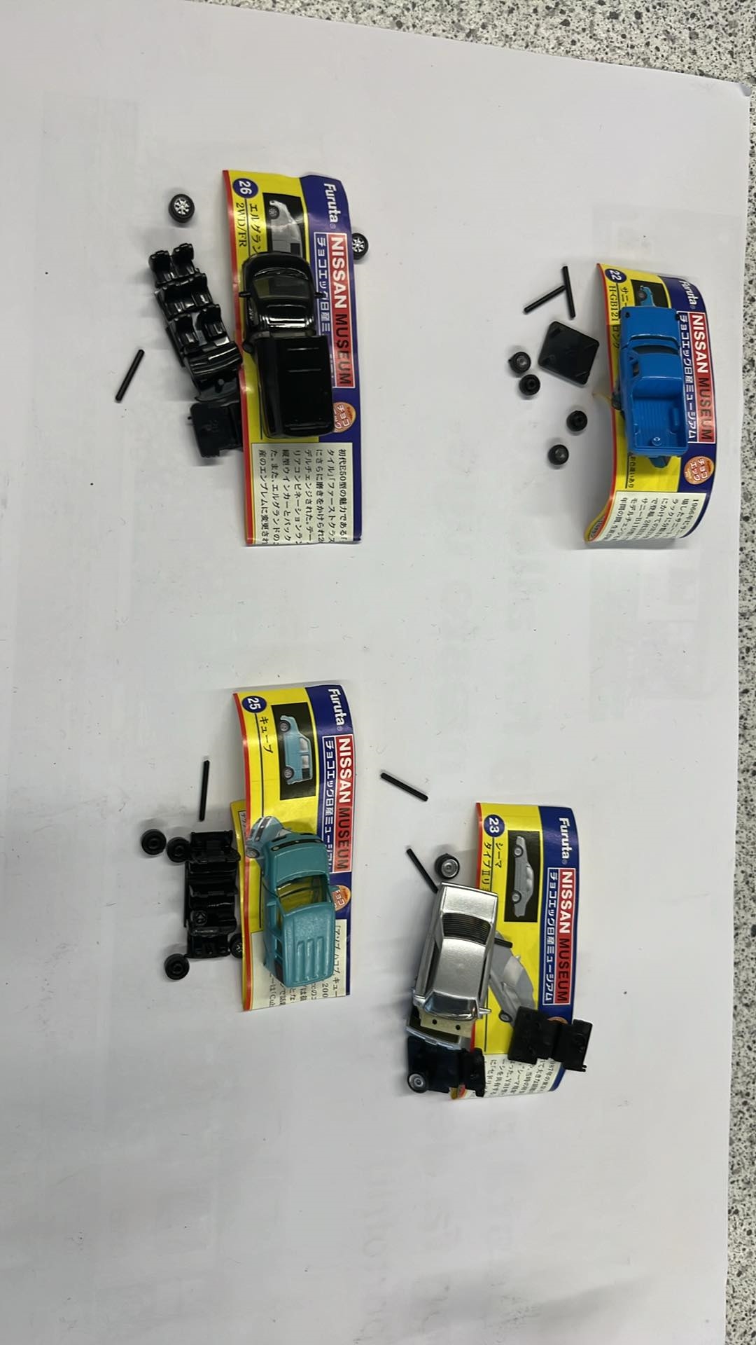 Kinderæg med fire forskellige saml selv biler, assorterede farver og modeller