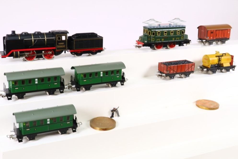 Jubilæumssæt med to nostalgiske tog til Märklins 50 års HO-jubilæum. Alle modeller i pladedesign.