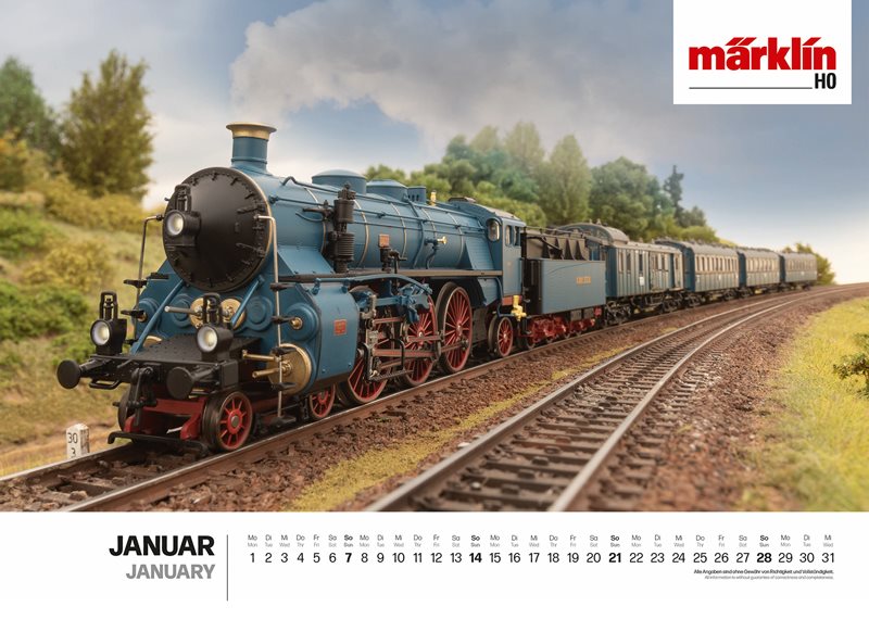 Vendbar kalender med 24 billeder i stort format af udvalgte Märklin- og Trix-modeller fra de