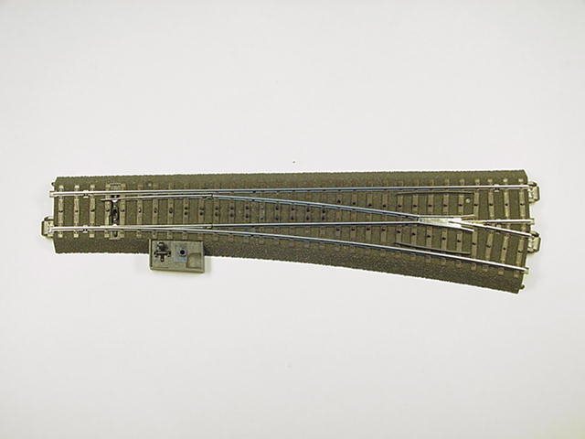 Ved sporskiftets ende anvendes 2 sporstykker 24071 - de nødvendige ballaststykker er vedlagt. Med håndomskifter.