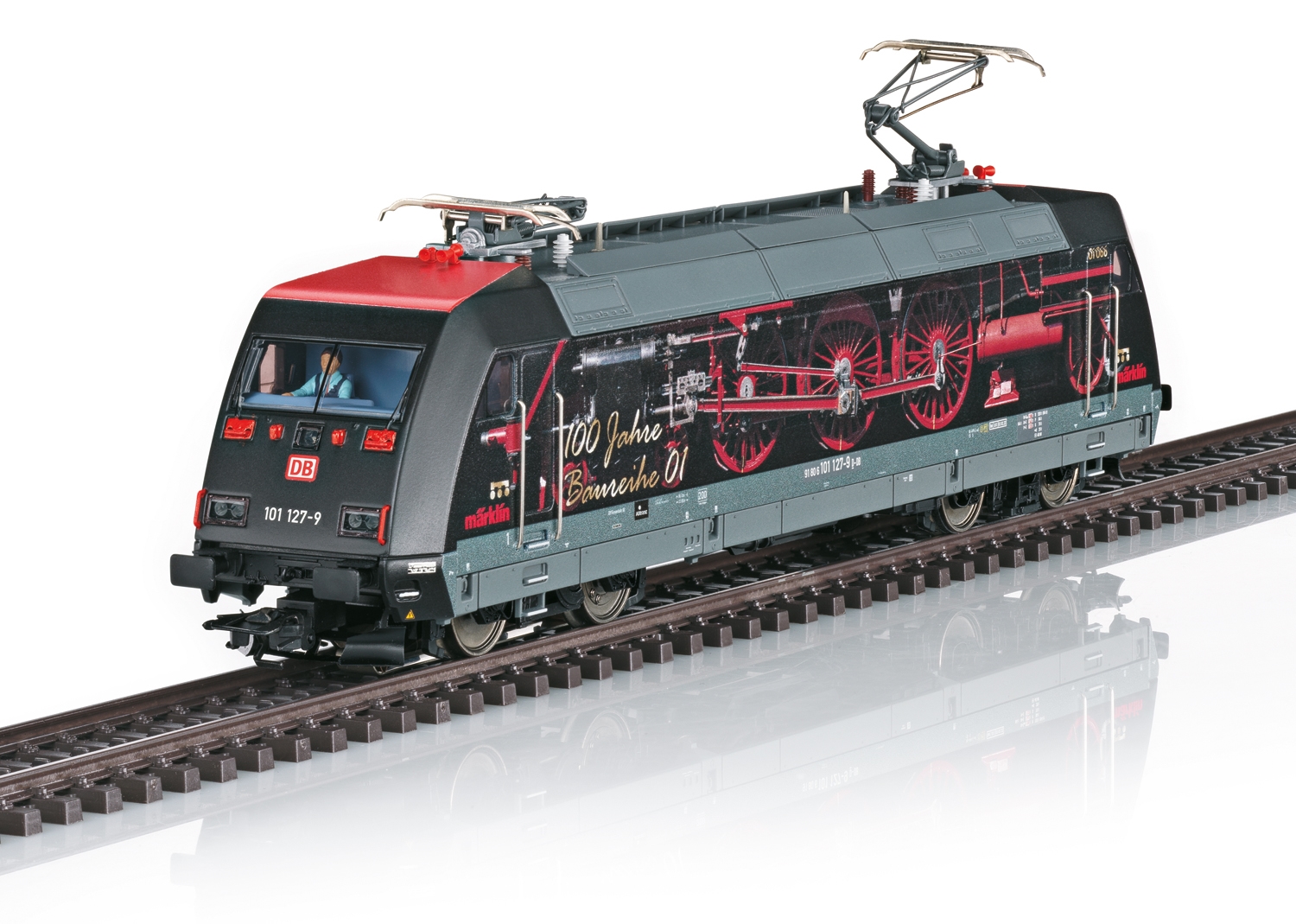 Model: Eksprestoglokomotiv klasse 101 fra Deutsche Bahn AG (DB AG). Reklamedesign "100 år BR 01". Driftstilstand 2025.