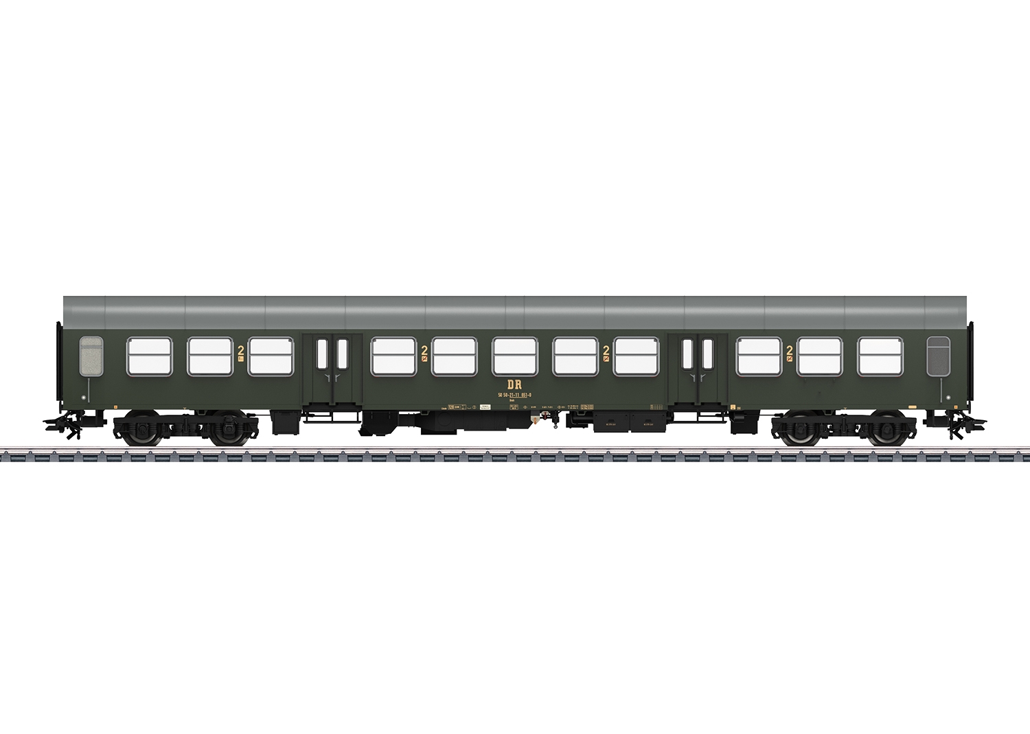 Model: Helt nyt design af Halberstadt center-entrance vogn. Flerfarvet interiør. LED indvendig belysning installeret som standard med bufferkondensator for at bygge bro over kortvarige strømafbrydelser. Udstyret med adskillelige, strømførende tætkoblinger. Den indvendige belysning fungerer i forbindelse med baglygtevognen fra sæt 42580, skal den angivne rækkefølge overholdes. Typespecifikt designede bogier, tagform, sidevægge og undervogn med mange påsatte detaljer. Bufferhøjde ifølge NEM. Bremseslanger, varmeledninger og skruekoblinger medfølger som separat fastgørbare dele.