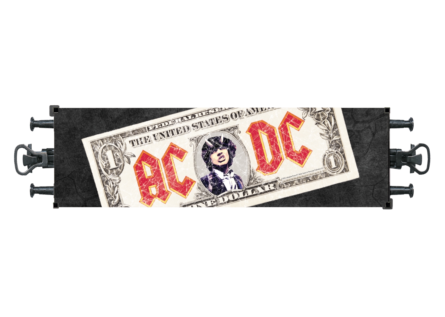 Containervogn i det velkendte seddeldesign til AC/DC Single Moneytalks fra 1990. Relex-koblinger. Vognlængde 11,5 cm. DC-hjulsættet E700580 solgt separat.