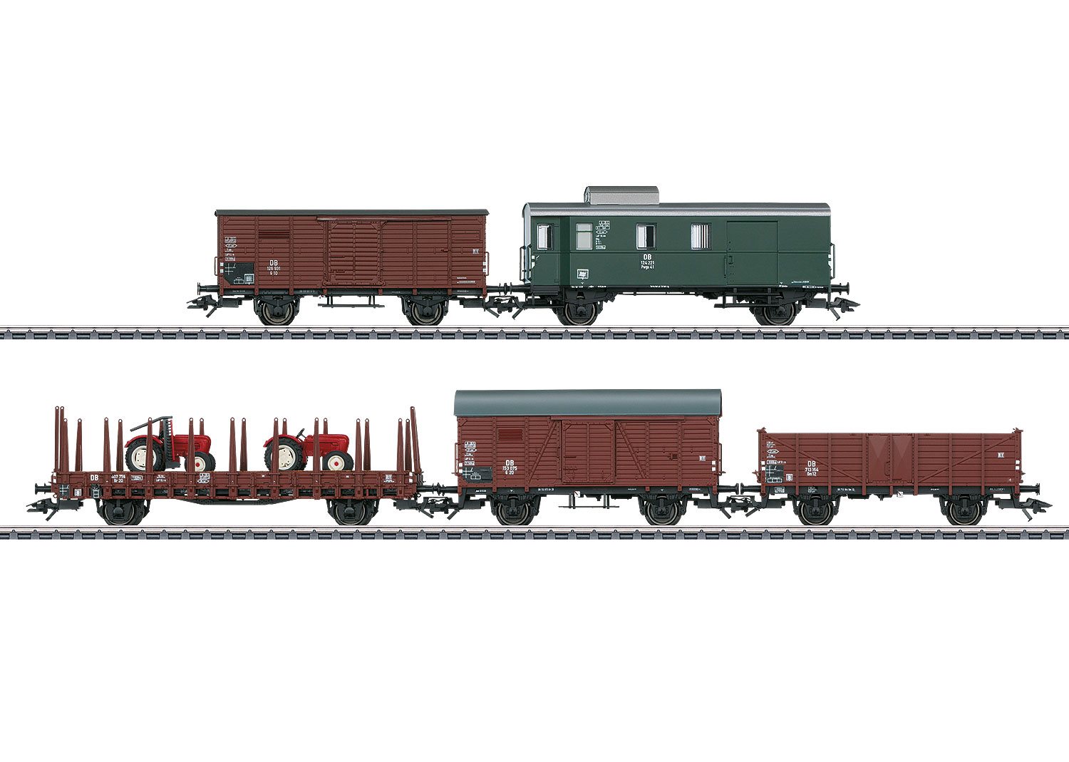 Komplet godsvognssæt med 5 forskellige godsvogne fra Deutschen Bundesbahn (DB) indsat i godsbefordringen som i driftsårene omkring 1960.